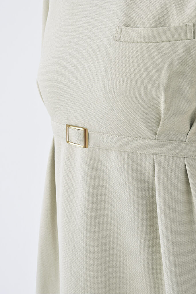 全身バランスがすっきり見える絶品チュニック。パンツを合わせた時に絶妙なシルエットになるように追求した黄金バランス。パイピングやバックルのゴールドを効かせたエレガントなデザインが上品な印象です。